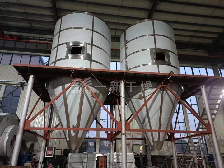 減水劑干燥設(shè)備工程原理:??減水劑專用干燥機由熱風(fēng)爐燃燒產(chǎn)生的高溫?zé)犸L(fēng),從干燥室頂部蝸殼通道進入,在熱風(fēng)分配器的作用下產(chǎn)生均勻旋轉(zhuǎn)的氣流快速進入干燥室內(nèi),并保持塔內(nèi)布風(fēng)均勻。減水劑等液體物料通過高速旋轉(zhuǎn)的霧化器,產(chǎn)生分散微細的料霧,料霧與旋流的熱空氣..