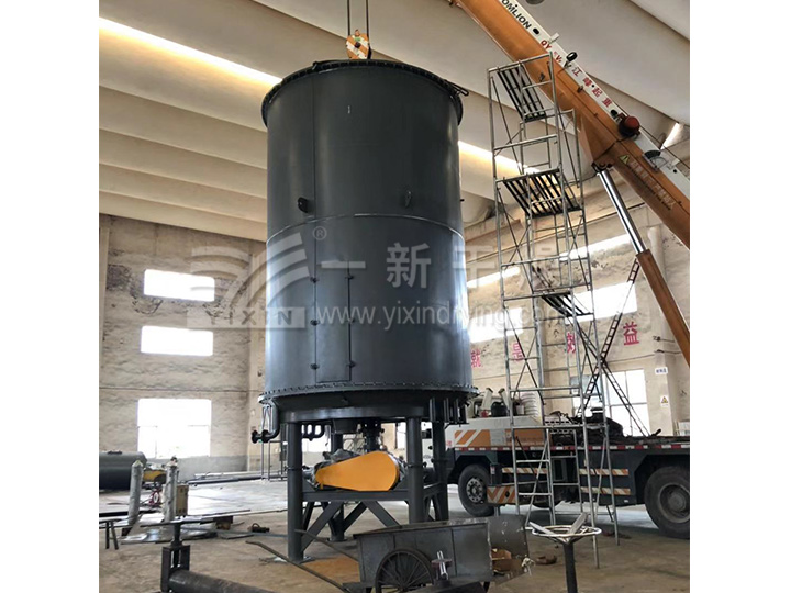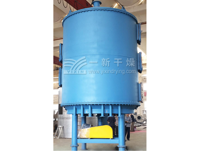 濕物料由加料器連續(xù)地加到干燥器上部di一層干燥盤上,帶有耙葉的耙臂作回轉(zhuǎn)運(yùn)動(dòng)使耙葉連續(xù)地翻抄物料。物料沿指數(shù)螺旋線流過干燥盤表面,在小干燥盤上的物料被移送到外緣,并在外緣落到下方的大干燥盤外緣,在大干燥盤上物料向里移動(dòng)并從中間落料口落入下一層。