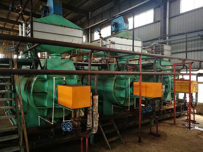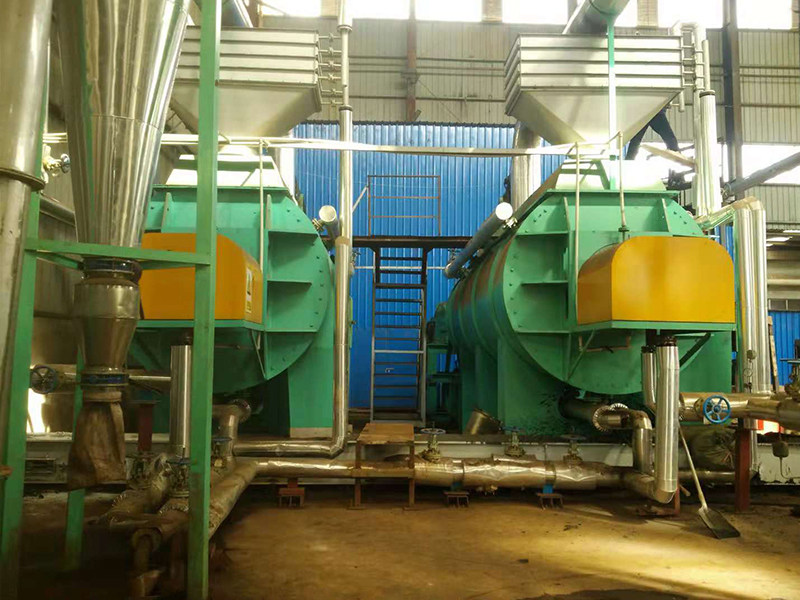 在干化過程中,熱蒸汽冷凝在轉(zhuǎn)盤腔的內(nèi)壁上,形成冷凝水。冷凝水通過一個管子被導(dǎo)入中心管,^終通過導(dǎo)出槽導(dǎo)出干燥機(jī)。在每兩片轉(zhuǎn)盤之間裝有刮刀,刮刀固定在外殼(定子)上。刮刀可以疏松盤片間的污泥,使廢蒸汽快速離開污泥。干燥機(jī)的傳熱介質(zhì)一般是0.2Mpa~0.6Mpa的飽和蒸汽。圓盤干燥機(jī)每片轉(zhuǎn)盤由兩個對扣的圓盤焊接而成。中心軸內(nèi)腔與所有轉(zhuǎn)盤內(nèi)腔相連通。為了提高轉(zhuǎn)盤的堅(jiān)固性,空心轉(zhuǎn)盤內(nèi)腔分部著許多支撐桿,支撐桿兩端支撐著左右兩個圓盤。根據(jù)所干化物料性質(zhì)的不同,轉(zhuǎn)盤可以采用低碳鋼,不銹鋼,或特殊合金鋼制造。在轉(zhuǎn)盤邊緣裝有推進(jìn)/攪拌器,它們有兩個功能:一是推進(jìn)輸送物料,二是攪拌混合物料。推進(jìn)器的傾角是可以調(diào)整的,轉(zhuǎn)盤的內(nèi)腔可以通入中低壓蒸汽,導(dǎo)熱油或高壓熱水傳遞干化產(chǎn)品所需熱量。