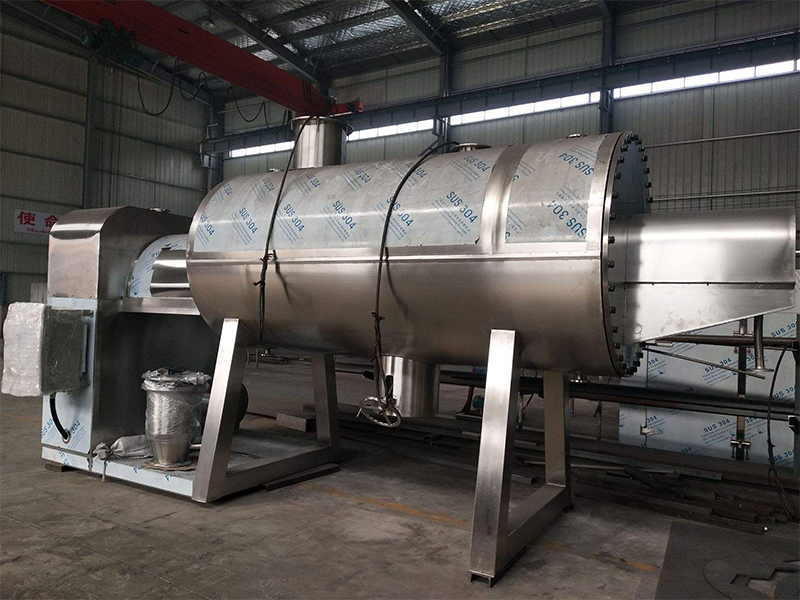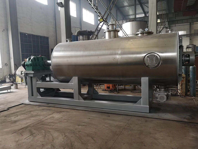濕物料分批次投入夾套加熱的容器內(nèi),在真空狀態(tài)下,帶有抄板的攪拌器不斷翻炒物料,傳導(dǎo)加熱蒸發(fā),并在容器內(nèi)推移形成循環(huán)流,水分或溶劑蒸發(fā)或回收后經(jīng)真空泵排出。